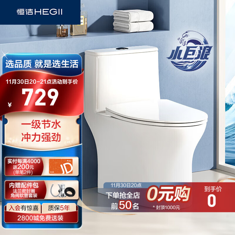 1、一次性下了两单,就是很信任恒洁牌子,用起来很舒服,放心购买就好了,外观、水件、釉面都很好,马桶还是要挑好的来用。