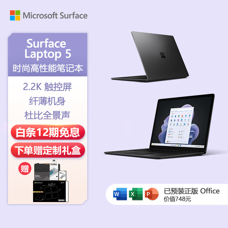 微软Surface Laptop 5 轻薄笔记本电脑 i5 16G+512G 典雅黑 Evo认证13.5英寸2.2K高色域触控屏价格:11788.00元!