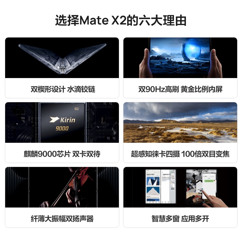 华为 HUAWEI Mate X2 麒麟9000旗舰芯片 无缝鹰翼折叠512GB釉白色 5G通华为手机 折叠屏(无充版)价格:10999.00元!