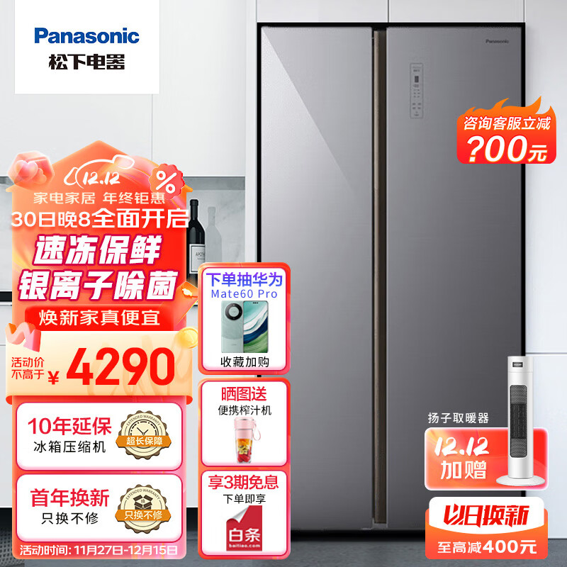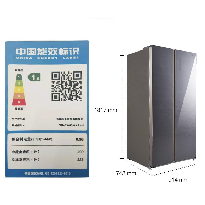 松下(Panasonic)632升大容量对开双门冰箱1级能效 银离子除菌风冷无霜玻璃面板-32度速冻NR-EW63WXA-H 以旧换新价格:4290.00元!