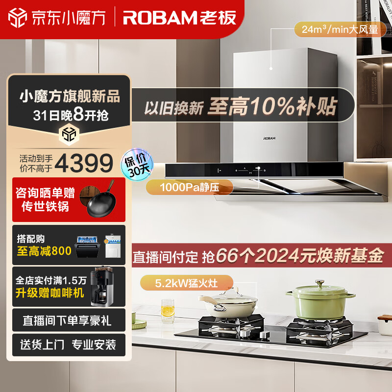 老板(Robam)抽油烟机免拆洗欧式顶吸双腔变频24大吸力烟机家用燃气灶吸油烟机灶具智能挥手60D3S套装(天然气)价格:4399.00元!