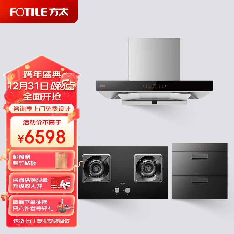 方太(FOTILE)烟灶消三件套 23风量直流变频欧式烟机5KW灶 智控砧板专位杀菌嵌入式消毒柜EMD22T+TH27B+J45EX.I价格:6598.00元!