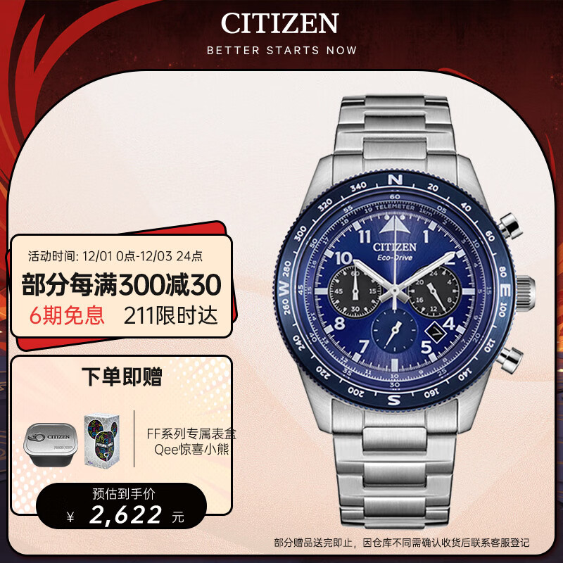 西铁城(CITIZEN)手表男日韩表FF系列光动能日显钢带时尚送礼物CA4554-84L价格:2822.00元!