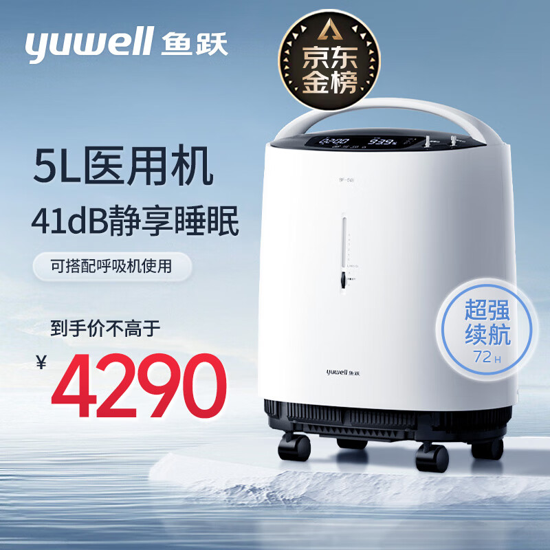 鱼跃(yuwell)5L升智呼吸轻音升级医用制氧机家用大流量智能触屏带雾化可搭配呼吸机老人孕妇吸氧机 家用8F-5W价格:4590.00元!