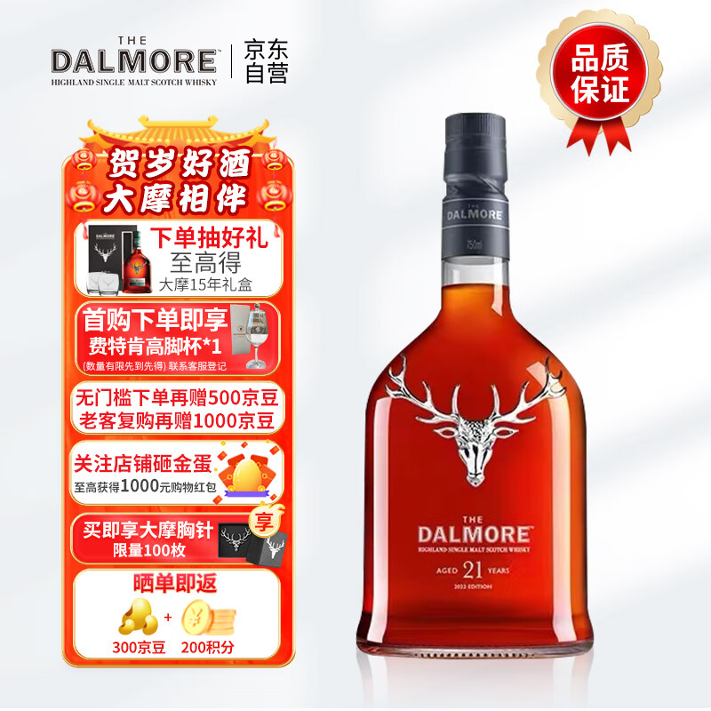 大摩(The Dalmore) 洋酒 21年 英国 单一麦芽 威士忌700ml价格:8188.00元!