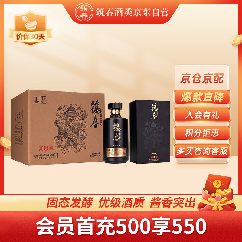筑春 真藏10 酱香型白酒 53度 500ml*6瓶 整箱装 年货 送礼价格:4639.00元!