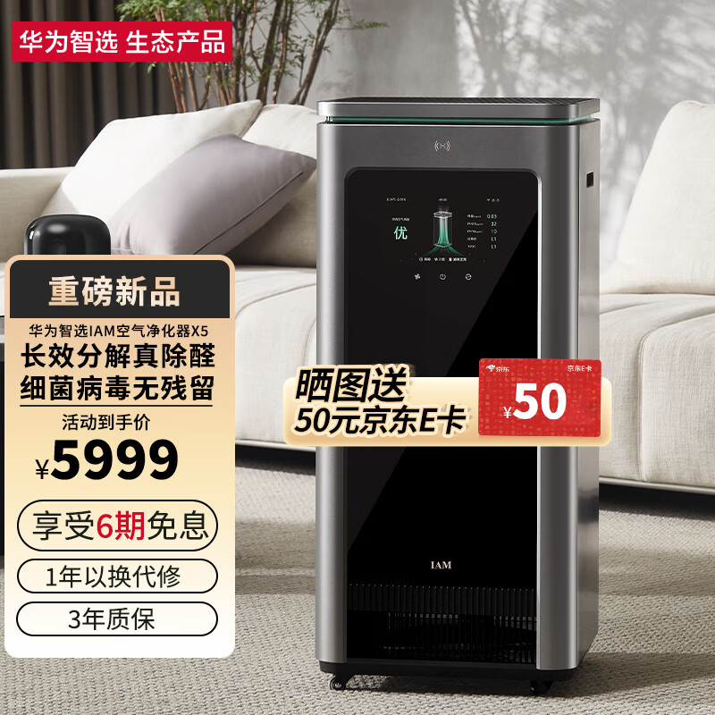 华为智选IAM长效空气净化器X5 去除甲醛细菌病毒医护级家用除雾霾除沙尘智能负离子净化机价格:7499.00元!