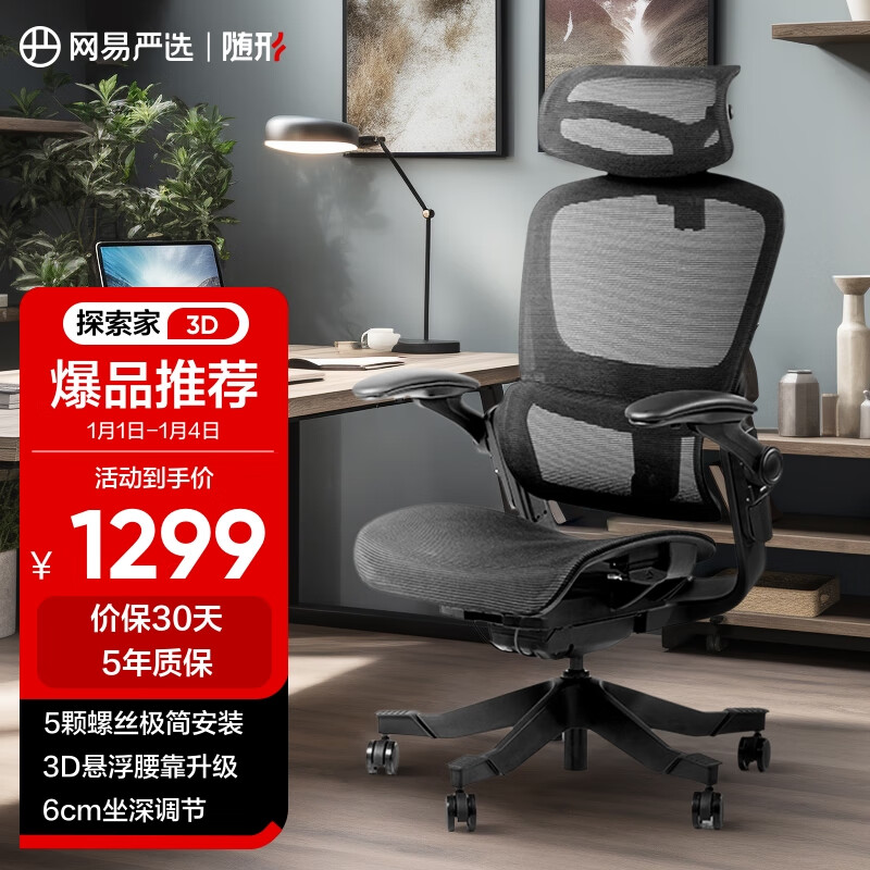 网易严选探索家经典款无搁脚 人体工学电脑椅办公电竞老板会议学习椅凳子价格:1799.00元!