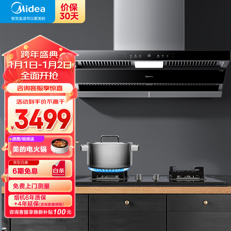 美的(Midea)抽油烟机 家用厨房顶侧双吸23吸力蒸汽洗 排油烟机烟灶联动套装DF5+Q523L天然气价格:3699.00元!