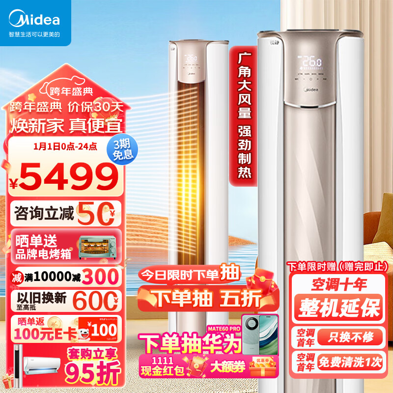 美的(Midea)空调2匹 锐静新一级能效变频冷暖空调柜机大出风口立柜式客厅空调智能家电以旧换新51LW/N8VHC1价格:5499.00元!