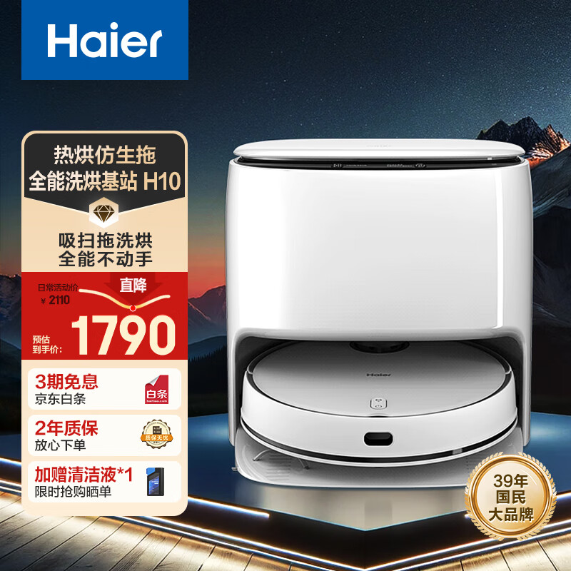 海尔(Haier)扫地机器人H10吸拖洗烘一体机全自动清洗 抹布自清洁拖地机器人吸尘器洗地机拖地机器人价格:1910.00元!