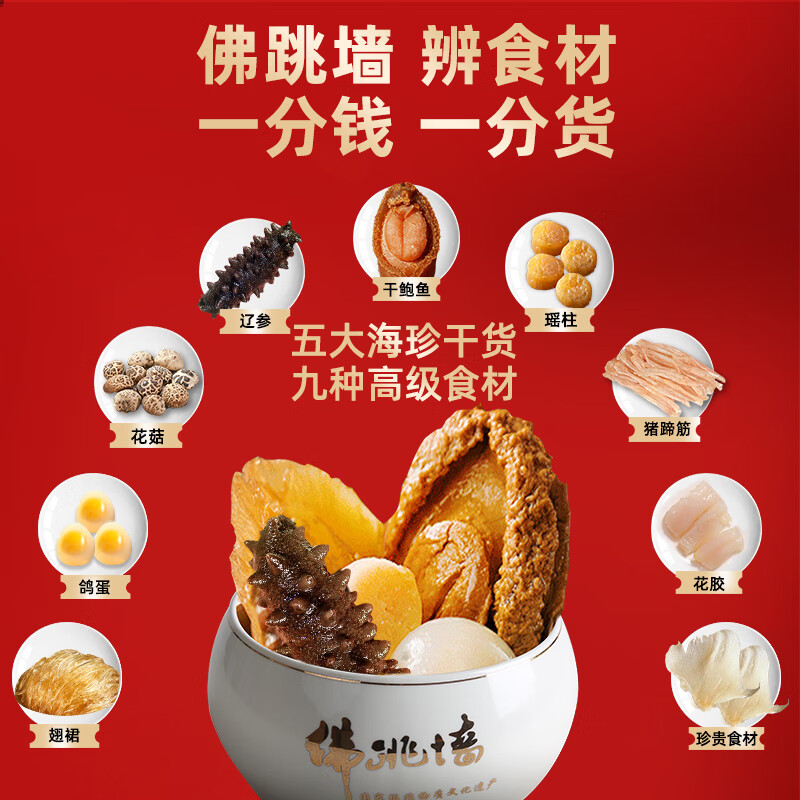 2、真的推荐啊,快递速度特别的快,爱了爱了现在人做吃的讲究就是色香味俱全;,但平常做菜太辛苦了,佛跳墙这种都不是很敢尝试,有这么方便而且好吃的半成品美味,自己煮不到半小时就搞定了,真的太方便啦。佛跳墙收到,是一份一坛的,一坛正好一个人食用,刚好一家人食用,很方便不浪费,多种珍贵食材营养均衡丰富,汤汁鲜香爽口,吃一次就喜欢上了,满意满意全五星。