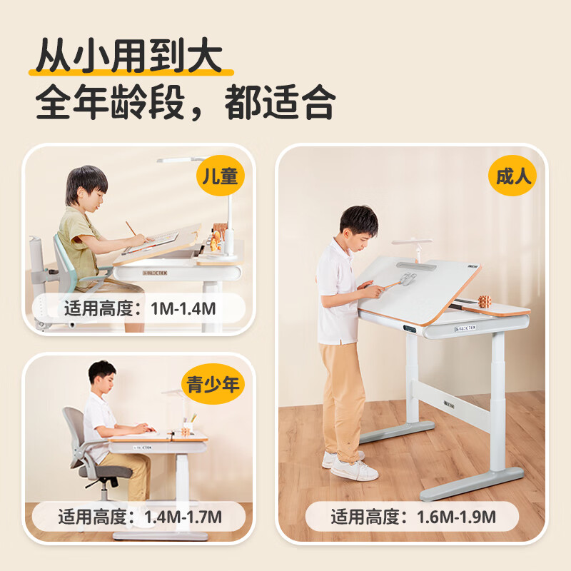 4、一直想买个学习桌椅,考察很久,发现这款桌椅的性价比很高,高度的调节更适合要上初中的孩子。能一直用到大学,以后长高了还可以适时调整。强烈推荐这款桌椅