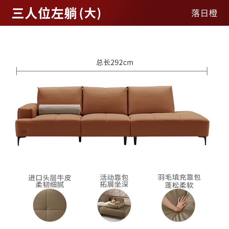 顾家家居皮沙发客厅靠包羽毛填充1213【落日橙】3人位自由躺左(2.92米)价格:8299.00元!