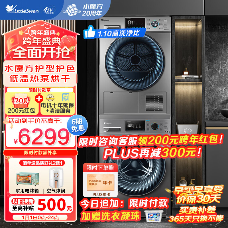 小天鹅(LittleSwan)水魔方洗烘套装 10KG全自动变频家用洗衣机+10KG护衣除菌烘干机 烘被子防缠绕 以旧换新 868+868价格:6299.00元!