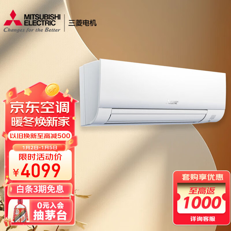 三菱电机10-15㎡适用 以旧换新 新三级能效 1匹 变频冷暖 家用舒适空调壁挂机 内部清洁运转 MSZ-BZ09VA价格:4099.00元!