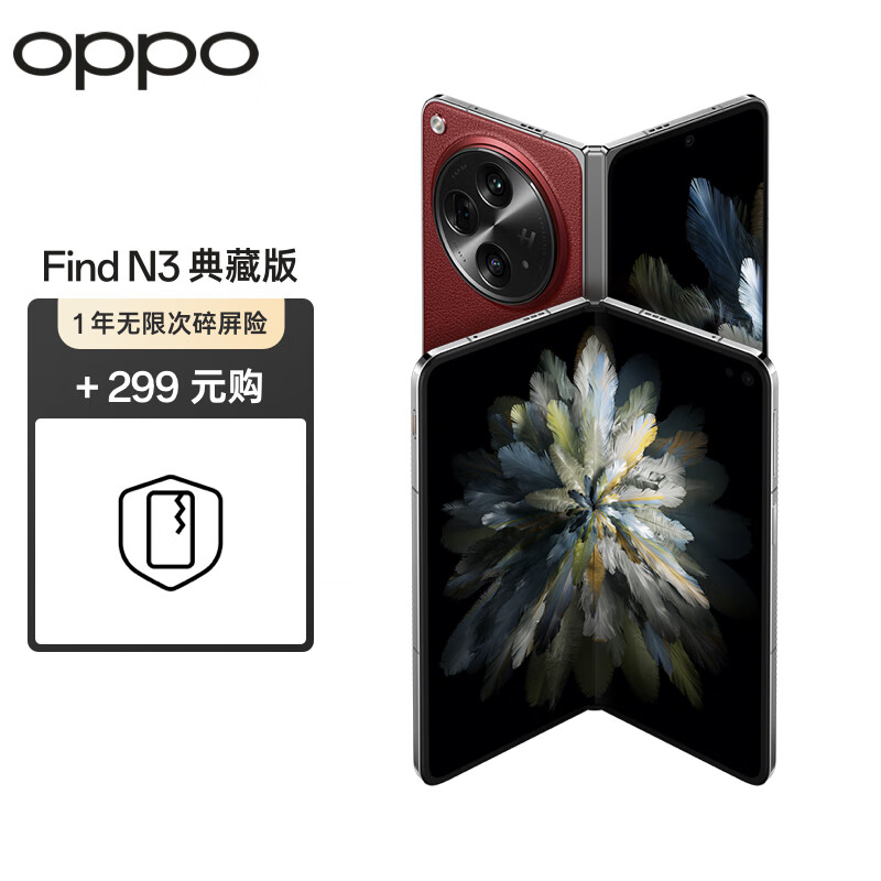 OPPO Find N3 典藏版 16GB+1TB 赤壁丹霞 超光影三主摄 国密认证芯片 5G 折叠屏手机【1年无限次碎屏险套装】价格:13298.00元!