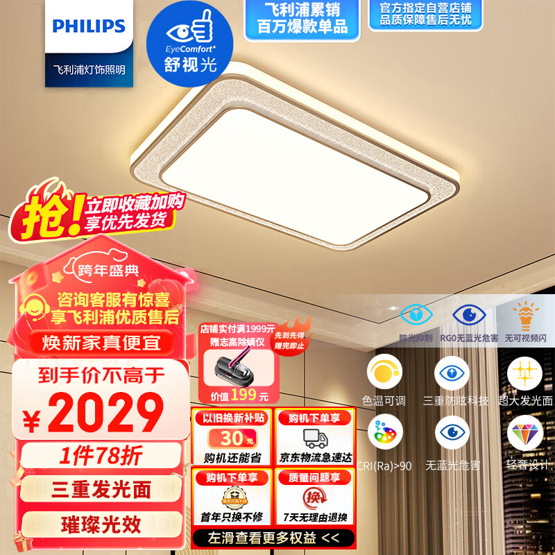 飞利浦全光谱LED吸顶灯客厅灯北欧风超薄分区调光调色灯具灯饰悦恒100W价格:2599.00元!
