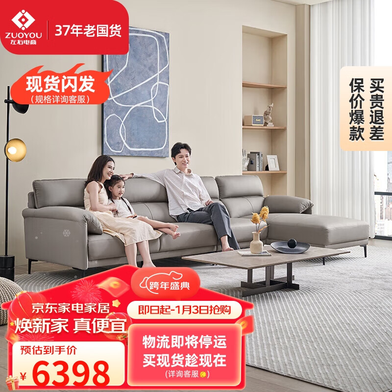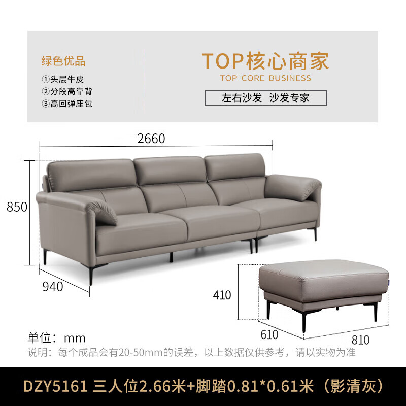 左右沙发现代简约头层牛皮沙发DZY5161三人位+脚踏【Z1012影青灰】价格:7648.00元!