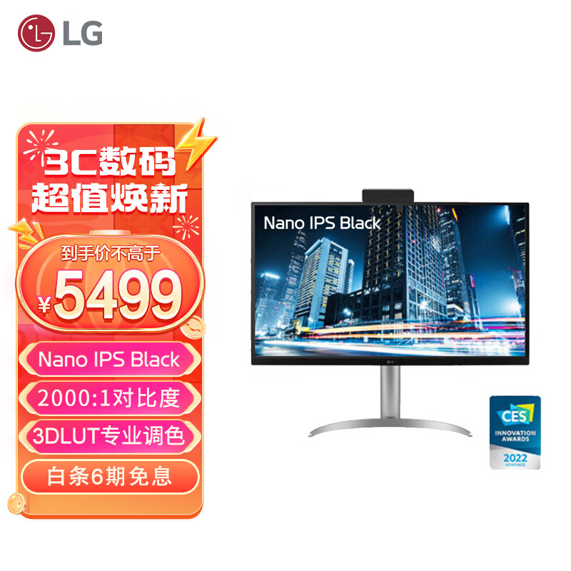 LG 31.5英寸 4K NanoIPS Black HDR400 2000:1对比度 硬件校准 3D LUT调色 Type-C 90W PS5显示器 32UQ85R价格:5499.00元!