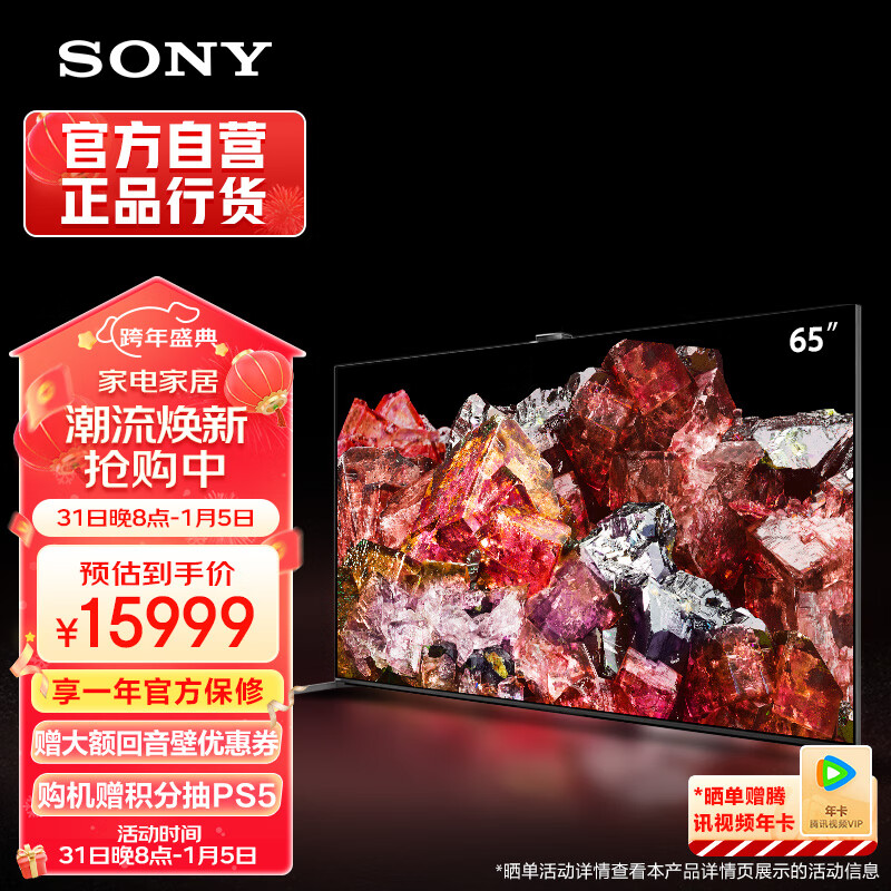 索尼(SONY)【官方直营】XR-65X95EL 65英寸 MiniLED 4K120Hz 旗舰影院电视 智能摄像头 XR认知芯片 京配上门价格:15999.00元!