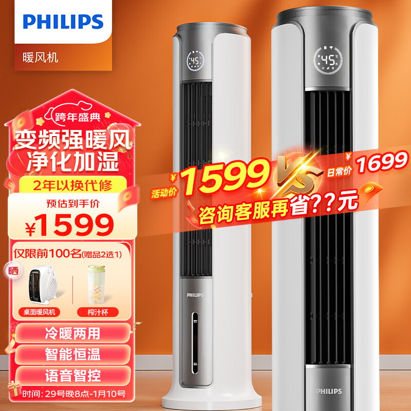 飞利浦(PHILIPS)取暖器家用暖风机电暖气电暖器加湿负离子净化杀菌冷暖两用语音APP遥控热风机烤火炉 ACR5166TN价格:1949.00元!