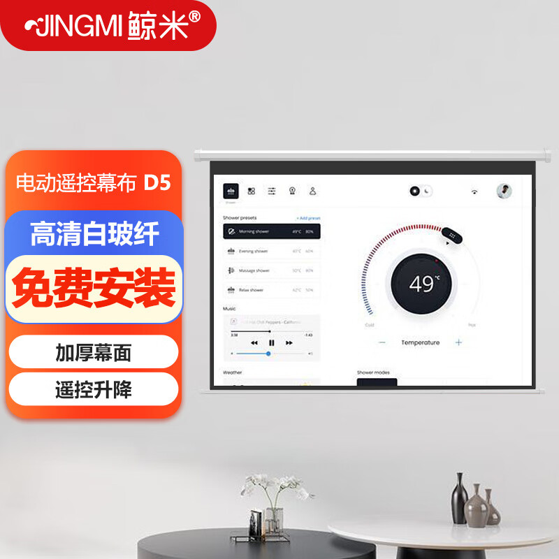 鲸米(JINGMI)投影幕布200英寸4:3电动遥控幕布D5纳米高清玻纤家用办公教育工程投影仪幕布投影机屏幕价格:4199.00元!
