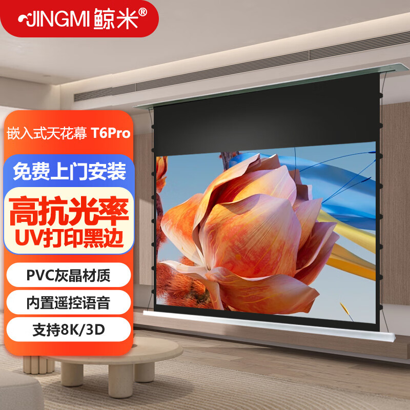 鲸米(JINGMI)嵌入式投影幕布T6pro纳米8K灰晶抗光150英寸16:9隐藏式天花幕布ai智能语音电动拉线家用屏幕价格:4999.00元!