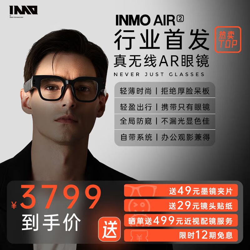 INMO Air2 影目智能AR眼镜 真无线XR眼镜 双目全彩 投屏观影电子书娱乐 支持iPhone安卓手机投屏 平光套装价格:3799.00元!