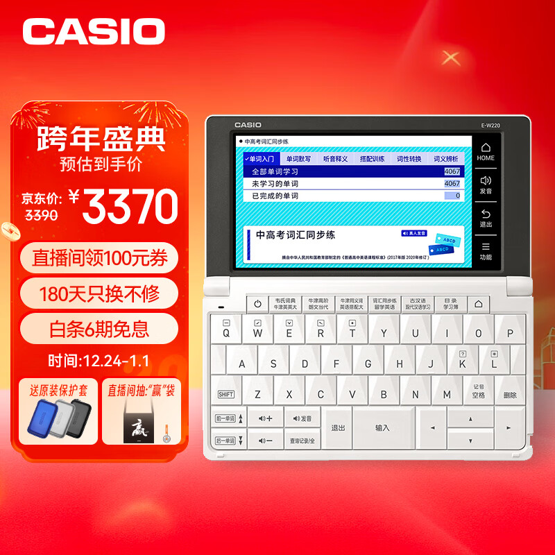 卡西欧(CASIO)电子辞典 E-W220WE 英汉辞典、留学、雪瓷白价格:3390.00元!