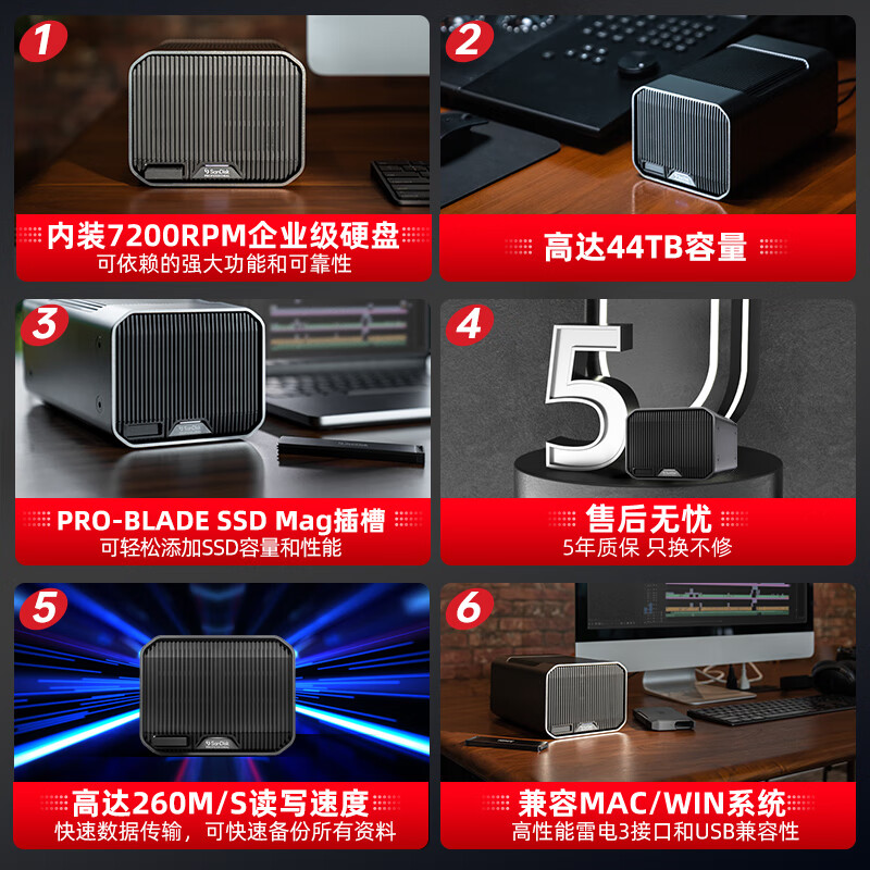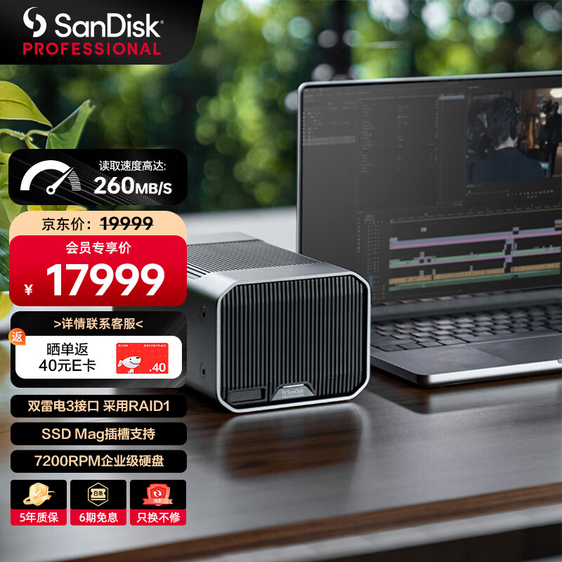 闪迪大师极锐 致镜36TB 双盘位企业级桌面移动硬盘 G-RAID? 磁盘列阵 双雷电3接口 内置7200转 高速桌面存储价格:18999.00元!