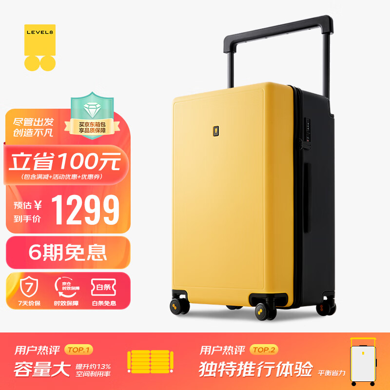 地平线8号(LEVEL8)行李箱男女密码拉杆箱 大旅行家大容量26英寸宽拉杆PC箱 黄黑拼色价格:1399.00元!