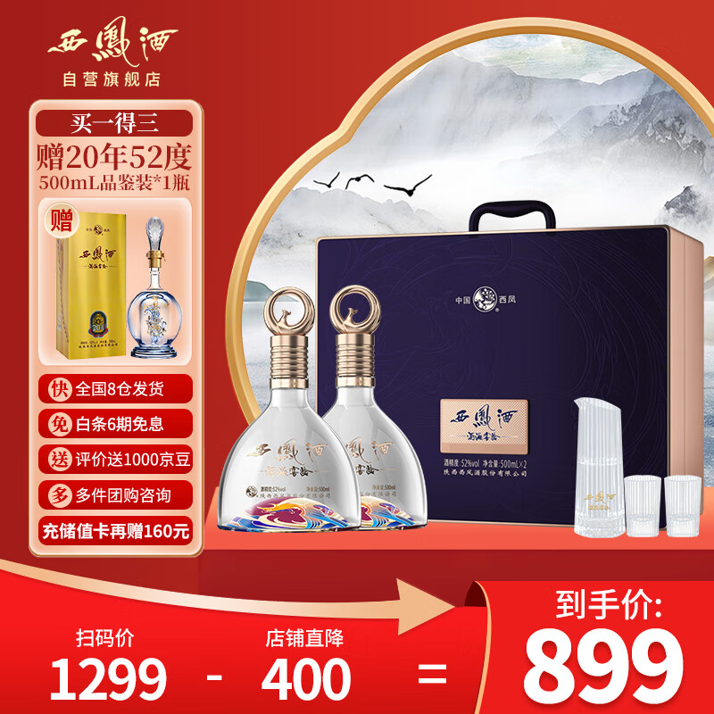 西凤酒 紫气东来·秋兴赋52度陕西纯粮凤香型白酒年货送礼盒装500mL*2价格:899.00元!