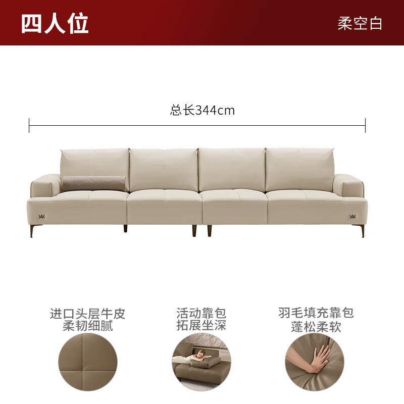 顾家家居(KUKA)皮沙发客厅靠包羽毛填充1213【柔】4人位价格:9299.00元!