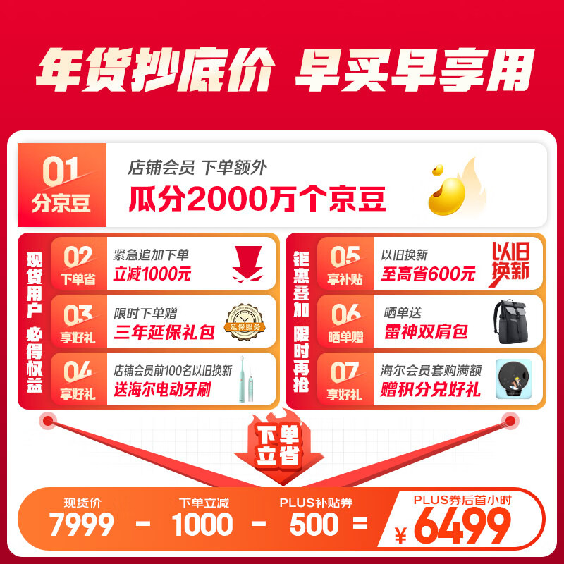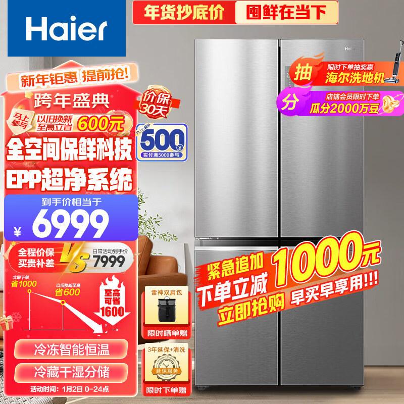 海尔(Haier)657升全空间保鲜十字双开四开门家用电冰箱一级能效变频净味风冷无霜大容量BCD-657WGHTD19S7U1价格:7999.00元!