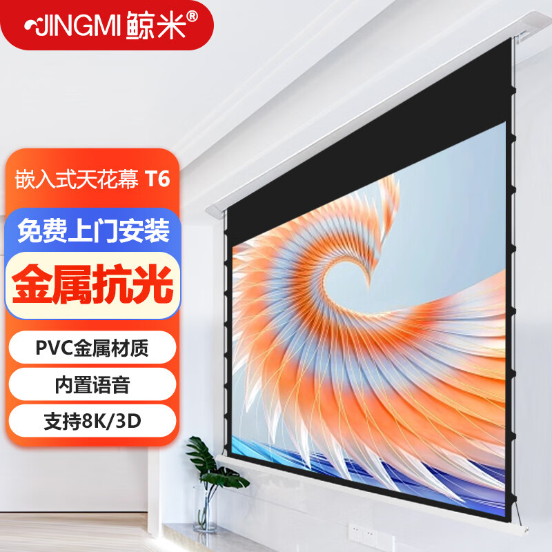 鲸米(JINGMI)110英寸16:9隐藏嵌入式天花幕布T6纳米4K金属抗光投影幕布电动拉线遥控ai家用影院投影仪屏幕价格:3599.00元!