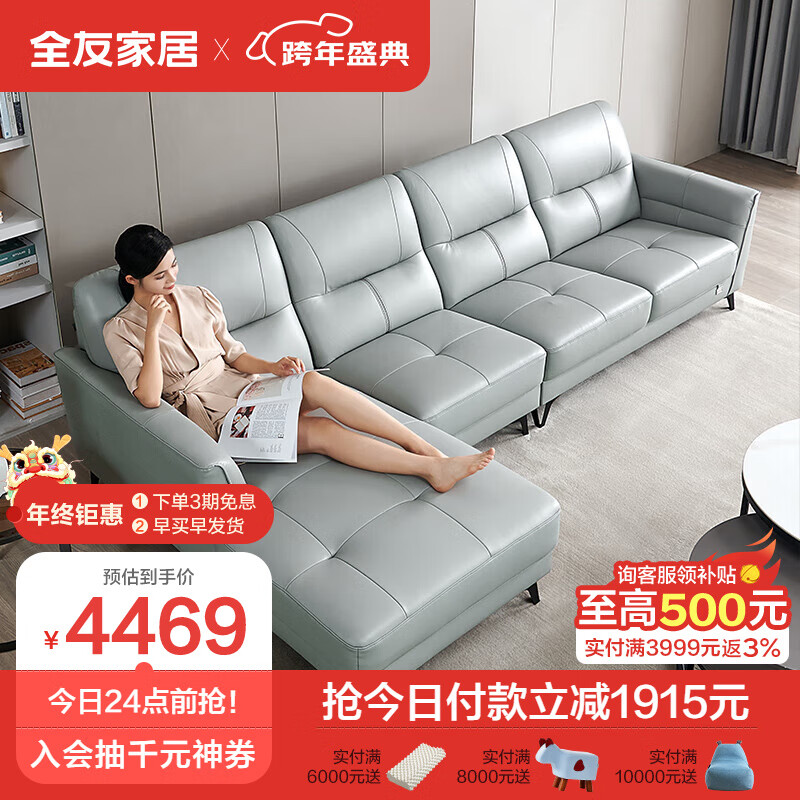 全友家居 意式极简头层牛皮沙发客厅家具中小户型沙发102568A价格:6383.89元!