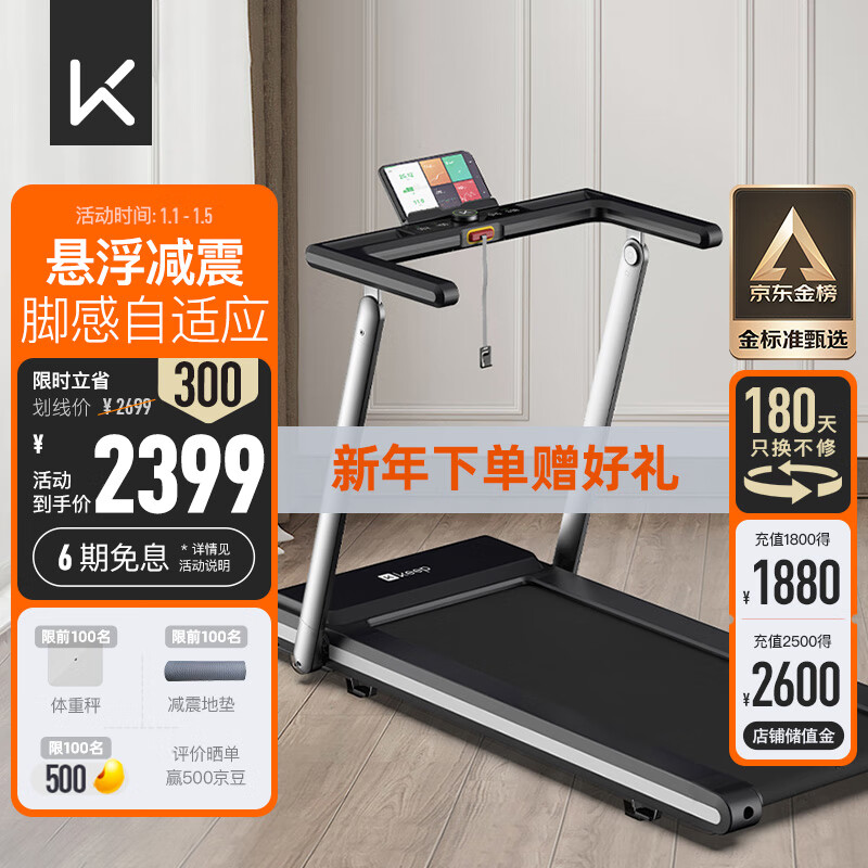 Keep 跑步机K3舒适版智能健身器材走步机家庭用跑步机 折叠减震 黑色价格:2399.00元!