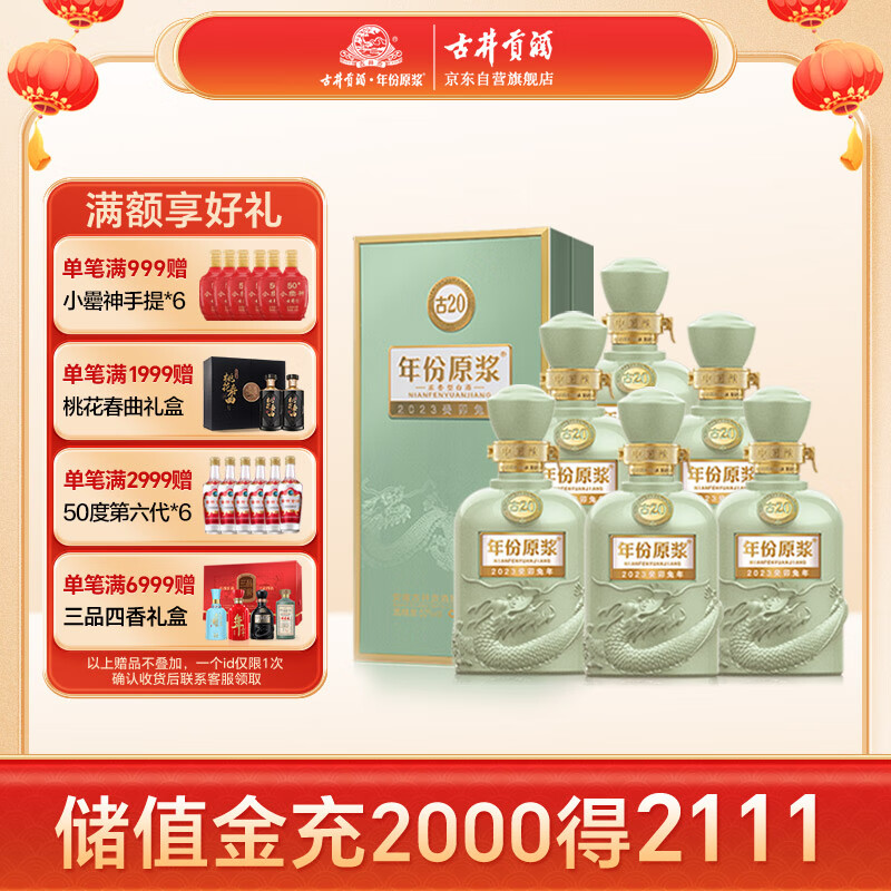 古井贡酒年份原浆 古20兔年生肖版 浓香型白酒 52度500ml*6瓶 整箱装价格:6000.00元!