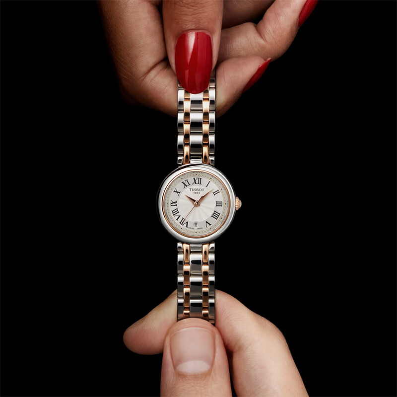 2、非常好看,比较小巧,调研了很久还是确定买天梭小美人,很好搭配,买的棕色的表盘显得手比较白。买的石英款,目前时间非常准