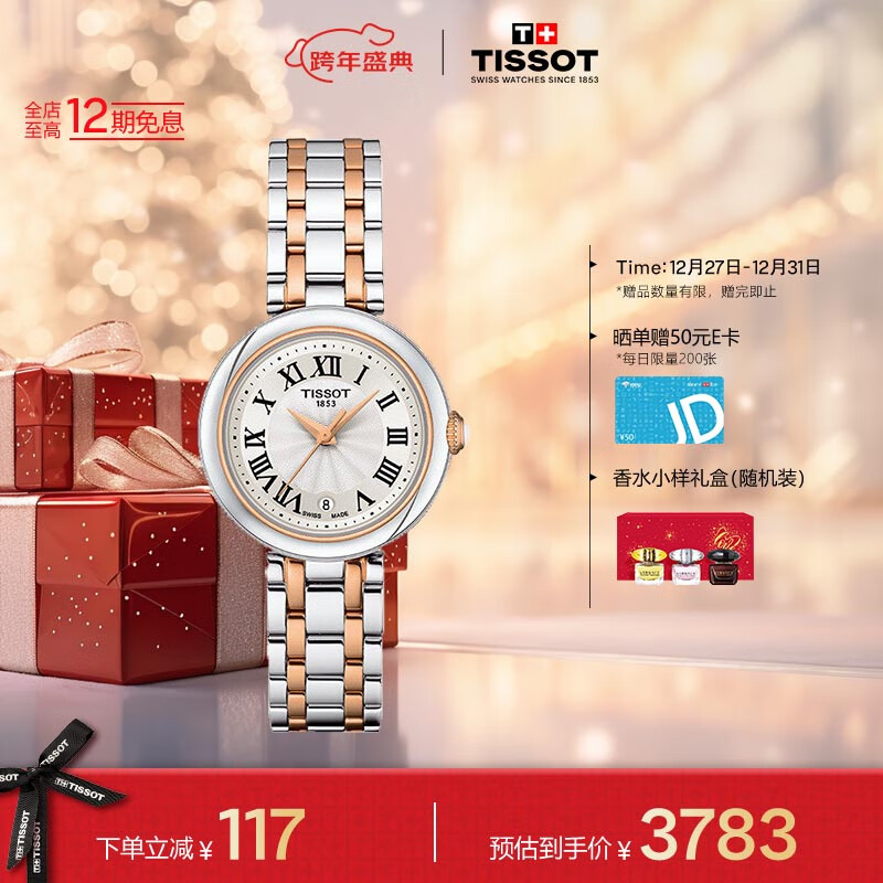 天梭(TISSOT)瑞士手表 小美人系列石英女表 新年礼物送女友T126.010.22.013.01价格:3900.00元!