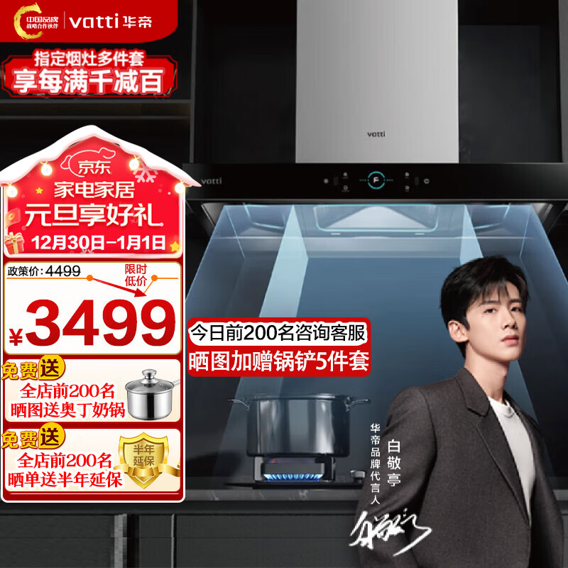 华帝(VATTI)油烟机 欧式抽油烟机燃气灶套装家用三腔变频.创世S7自动清洗24立方爆炒风量爆吸i11207厨房三件套 万人加购 烟灶套装(207烟机+5.0kW天然气)价格:3699.00元!