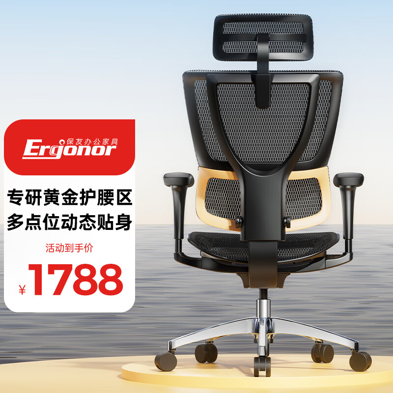 保友办公家具(Ergonor)优b 2代金腰带限定款人体工学椅电脑椅办公椅电竞椅 黑色网(Q3.0)价格:2488.00元!