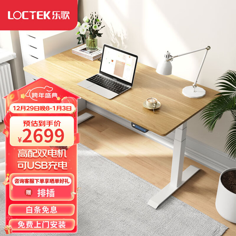 乐歌电动升降桌电脑桌站立办公学习桌写字书桌 E5-N/1.6m原木色套装价格:2969.00元!