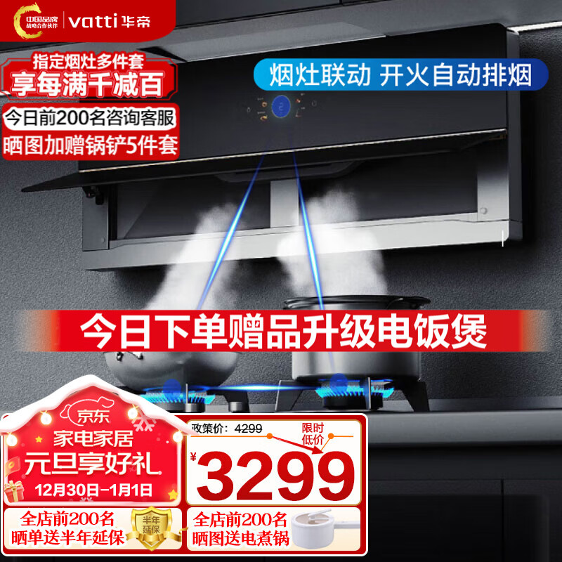 华帝(VATTI)油烟机灶具套装华帝官方理想家X5/X5S/X5Pro超薄近吸双腔25立方爆炒风量变频侧吸超薄天然气灶 i111X5S单烟机升级联动流光彩屏价格:3799.00元!