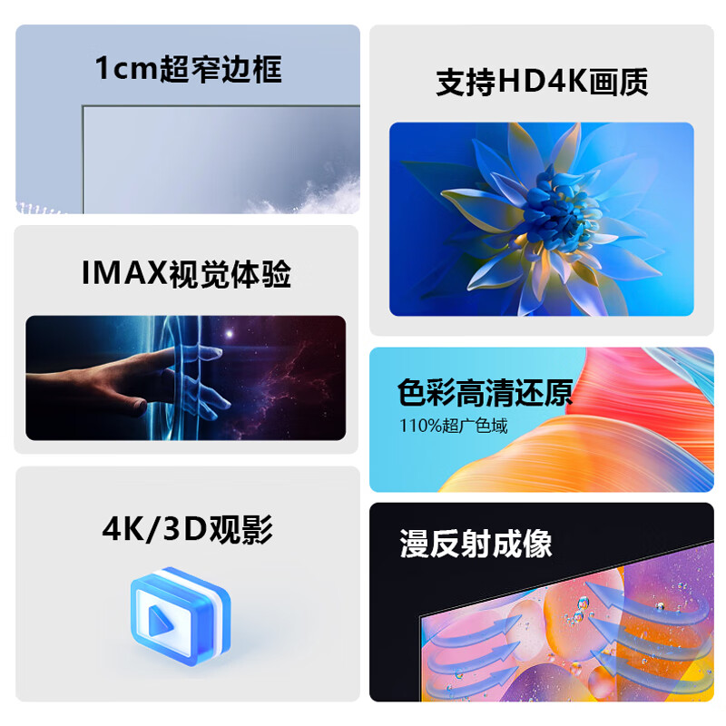 鲸米银河系激光电视抗光屏黑栅抗光软屏150英寸16:9配置参数: