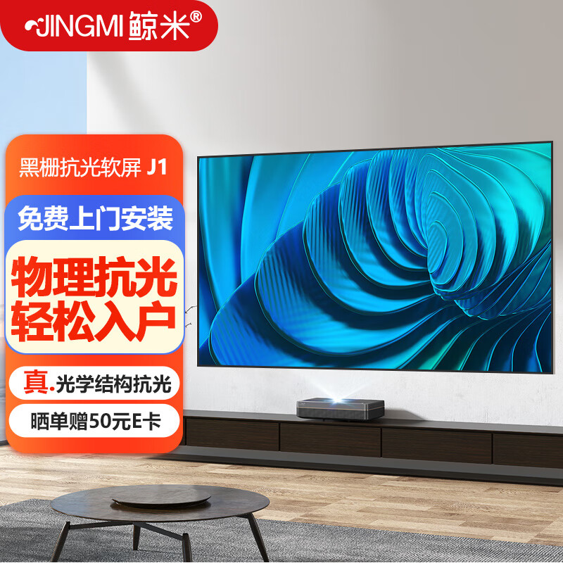 鲸米(JINGMI)激光电视抗光幕布150英寸16:9黑栅抗光软屏J1高清4K超短焦投影仪家用办公窄边画框抗光幕布价格:16999.00元!