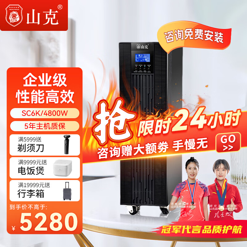 山克 在线式SC6K ups不间断电源6KVA/4800W企业办公电脑服务器稳压应急备用ups电源价格:5280.00元!