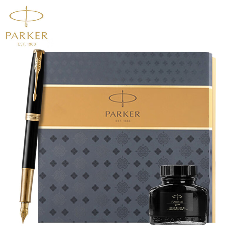 派克(PARKER)高端钢笔 签字笔 商务送礼男女生日学生练字书法礼品文具套装 卓尔丽雅黑金夹墨水笔+墨水礼盒价格:3488.00元!