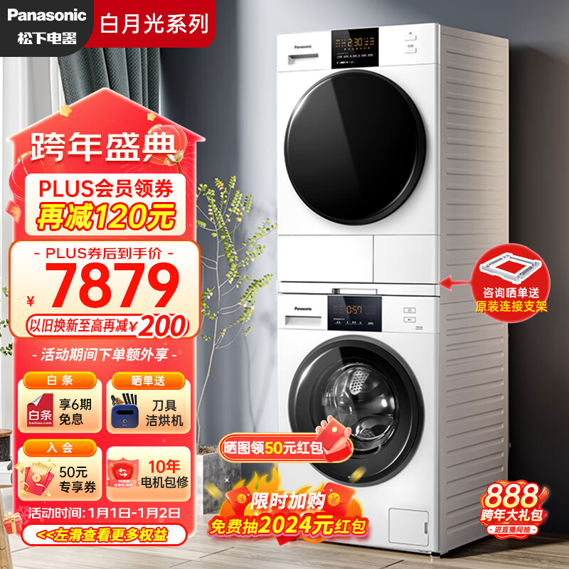 松下(Panasonic)洗烘套装 白月光 10kg滚筒洗衣机+9kg热泵烘干机 原装变频压缩机 羊毛洗 羽绒服烘 31JED+EH900W价格:8799.00元!